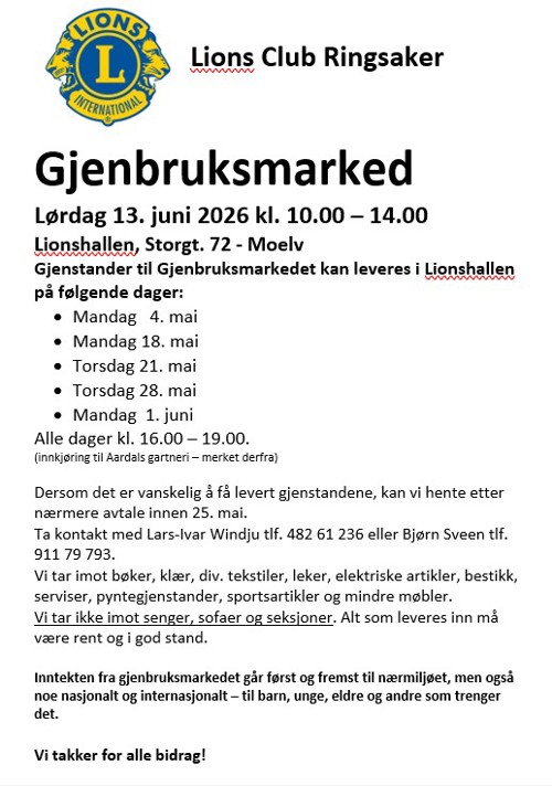 Her finner du oversikt over innleveringsdager til sommerens gjenbruksmarked i Lionshallen.